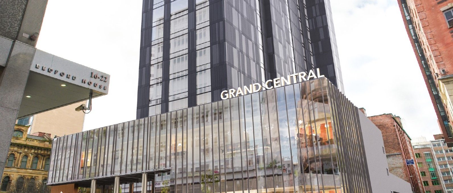The Grand Central Hotel is now complete with the owners’ multi-million-pound investment rejuvenating the former Windsor House (an office building constructed in 1974) on Belfast’s Bedford Street.